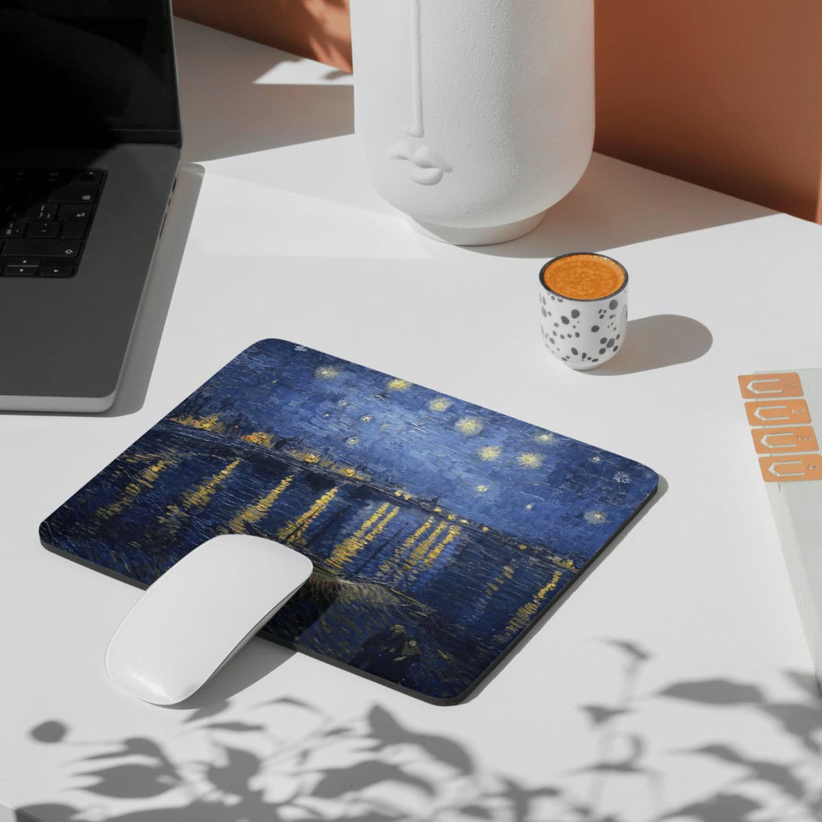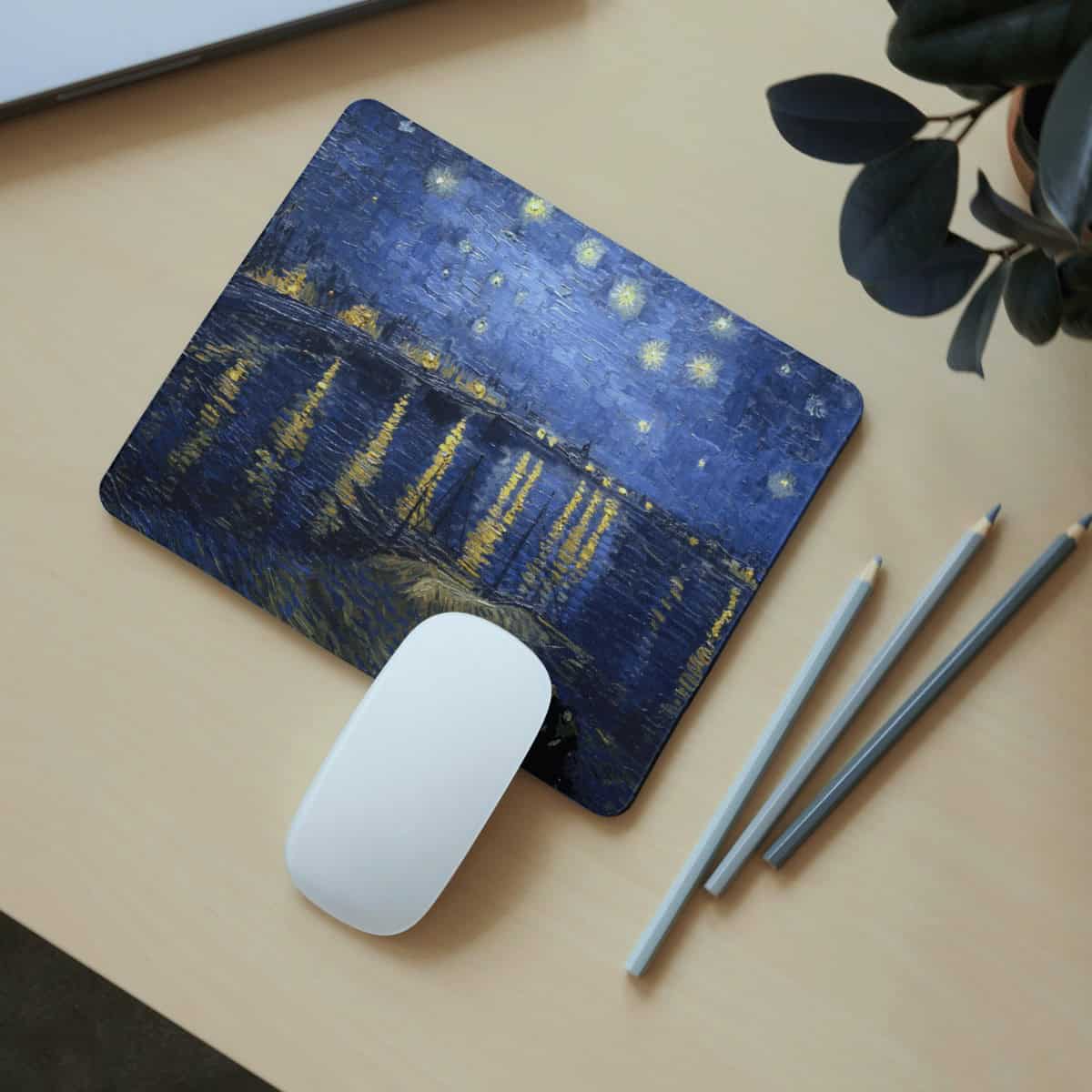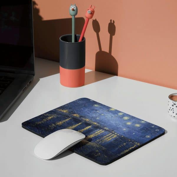 Van Gogh Rhone Üzerinde Yıldızlı Gece Kare Mouse Pad – Sanat Temalı Kaymaz Tabanlı Fare Altlığı